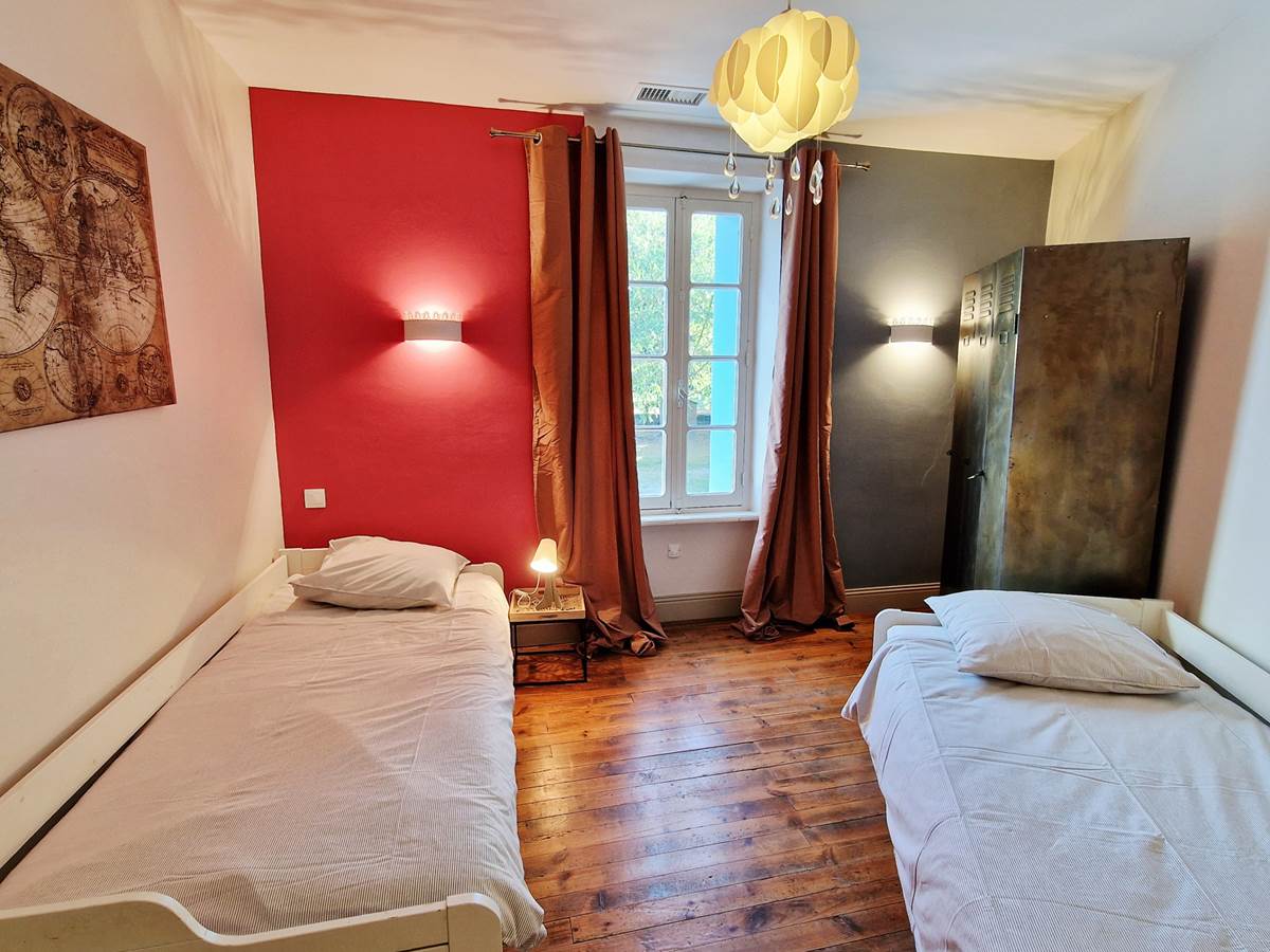 - Le temps des secrets pour 13 personnes avec 6 chambres dont 4 sont modulables (soit 2 lits en 90 cm, soit un lit extra large 180 cm) et une chambre d'enfants avec 3 lits simples (dont un lit "tiroir) 3 salles d'eau avec grandes douches à l'italienne (1mx1m) et un WC à chaque étage. Il y a une chambre avec salle d'eau au rez de chaussée et 5 chambres à l'étage.