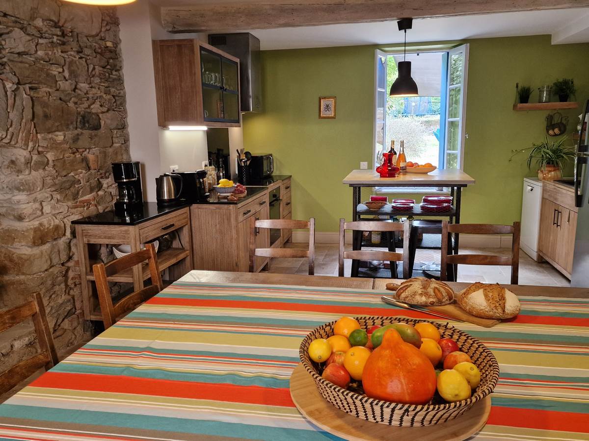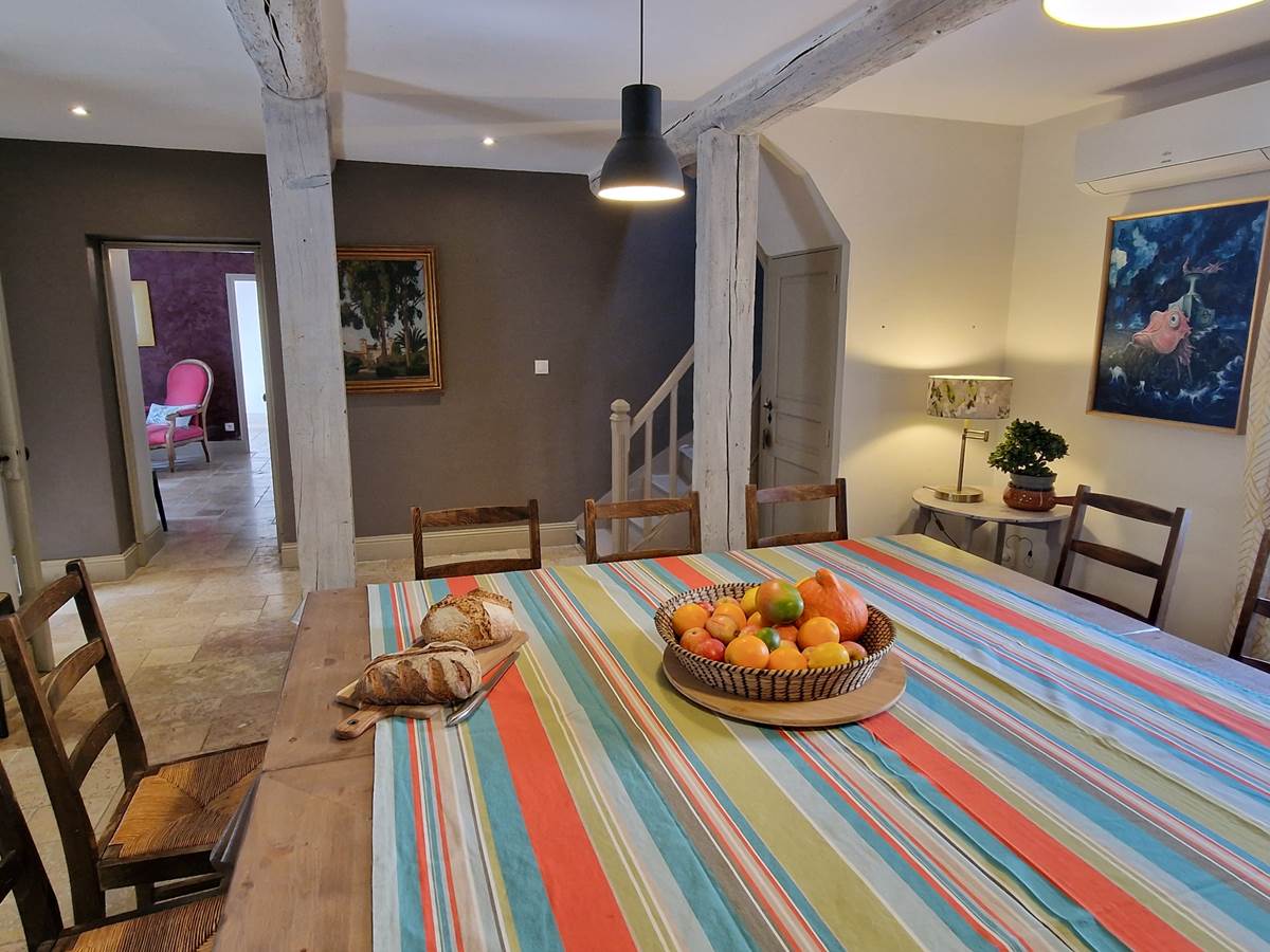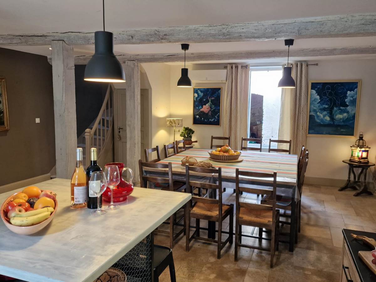 Dans la salle à manger une immense table vous permet de manger jusqu'à 20 personnes.