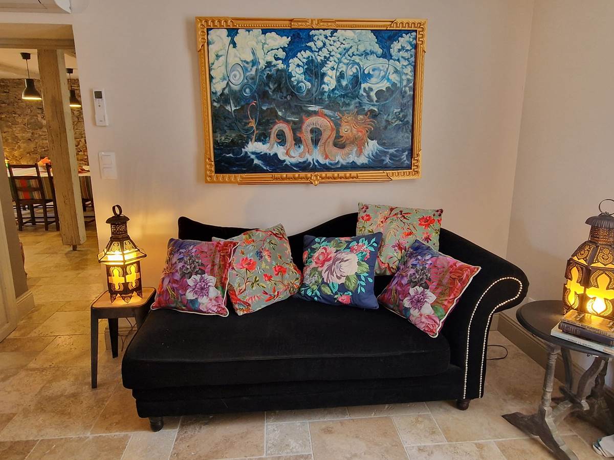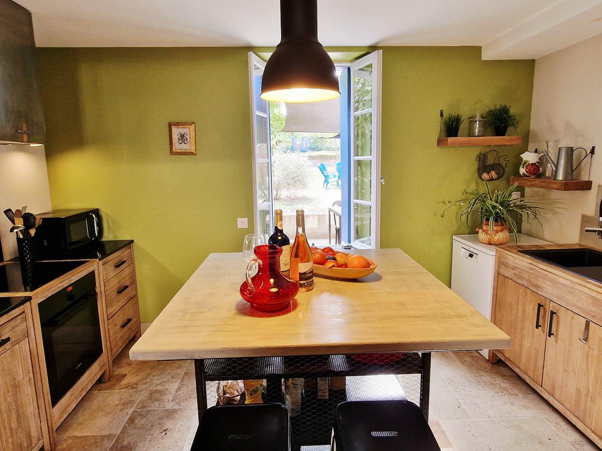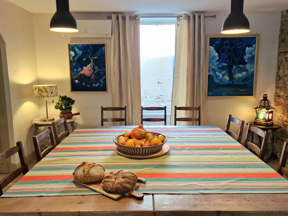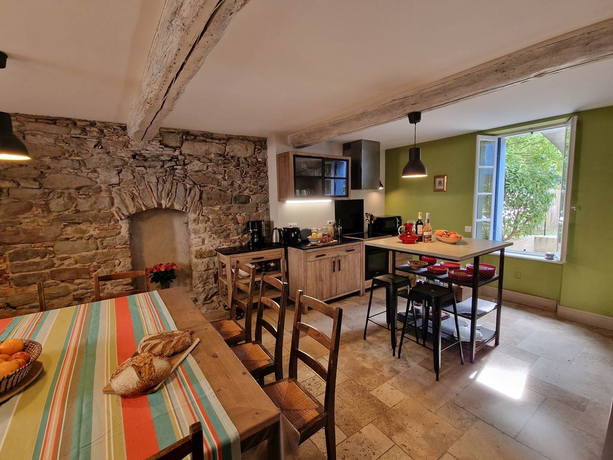 Dans la salle à manger une immense table vous permet de manger jusqu'à 20 personnes.