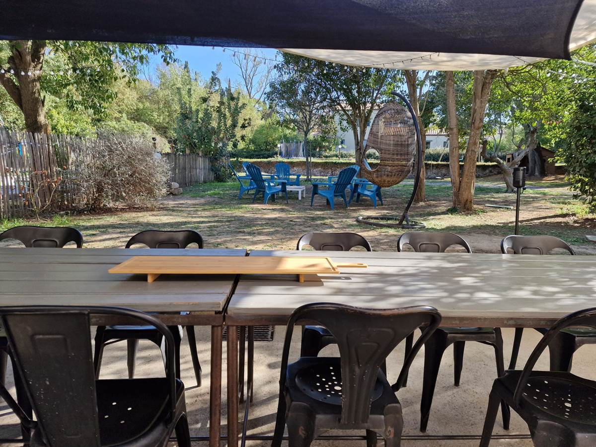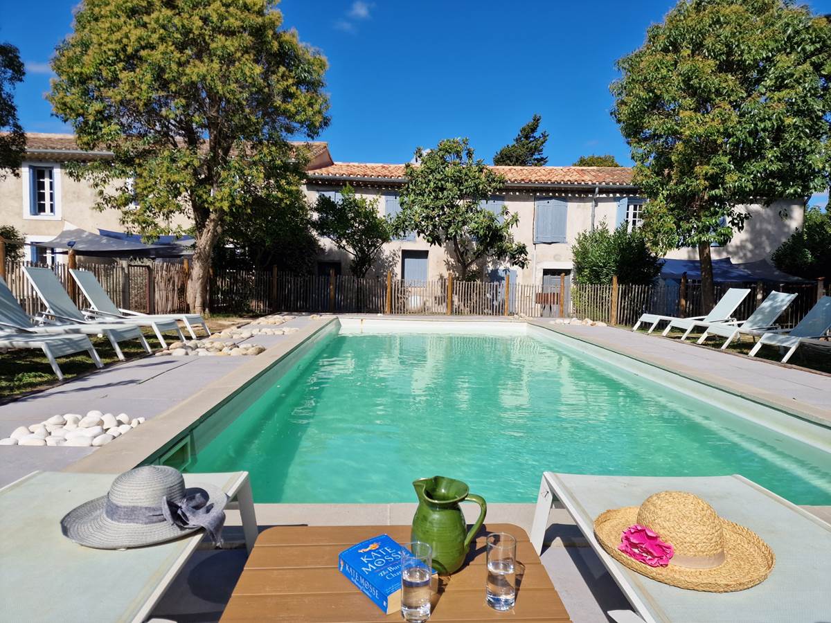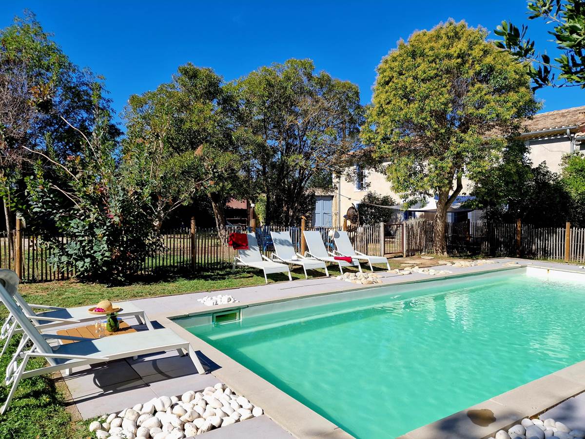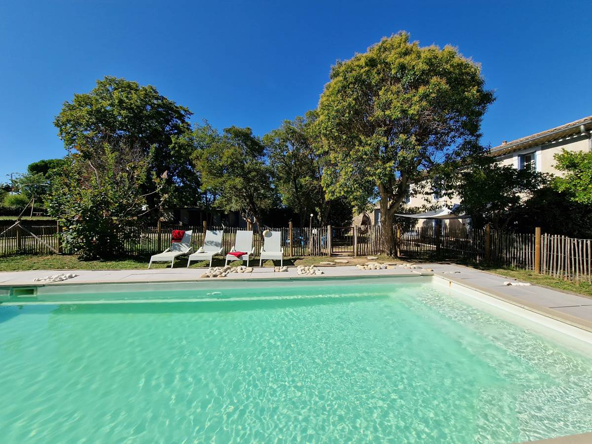 Le jardin, équipé pour la vie à l'extérieur vous donne accès à la piscine (10mx4,20m) doublement sécurisée (volet roulant électrique immergé + clôture) qui est privatisée.